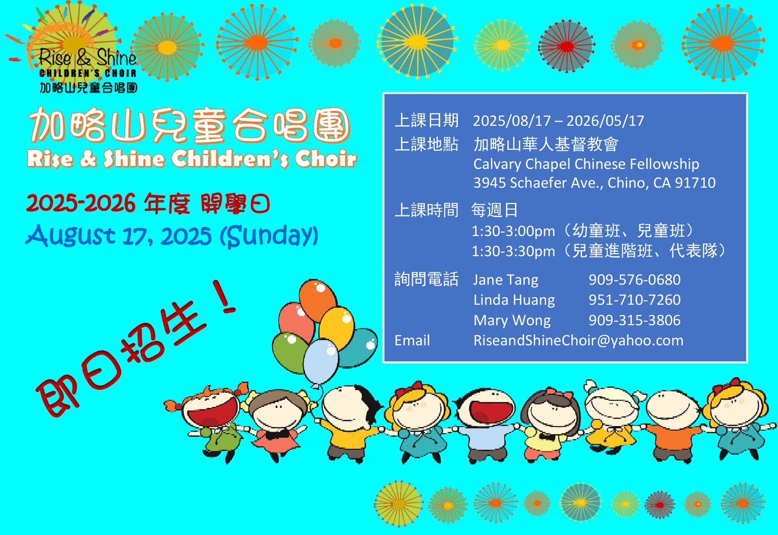 3945 Schaefer Avenue, Chino, CA 91710 。 909-591-0080 www.cccf.tv |